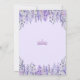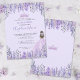Aquarelle Tiara Floral Purple Quinceañera Invitation : Cette invitation charmante comprend un jardin d'aquarelle blanc ou lavande avec des tiges délicates de lavande dans diverses teintes violettes et des feuilles verts doux, le tout contre un arrière - plan violet vibrant. Le design est à la fois élégant et amusant, avec un mélange de polices serif classiques et de belle typographie de script ajoutant de la sophistication. Une tiara de princesse violette pétillante et une fille dans une robe violette mousseuse assortie ajoutent une touche royale à l'invitation. Vous pouvez personnaliser davantage la conception en ajustant les couleurs de police pour la rendre plus claire ou plus colorée. Les fleurs sont déjà dans des teintes vibrantes, mais si vous voulez que le design pop encore plus, il suffit de basculer le calque "blanc transparent" pour tout égayer. L'arrière - plan violet peut être customisé pour correspondre à votre thème, et le fond de l'invitation présente les mêmes accents floraux et tiara pour un design cohésif. Disponible sous forme d'invitation imprimée ou d'invitation numérique téléchargeable qui peut être envoyé par courriel ou imprimé localement, cette invitation est parfaite pour célébrer votre Quinceañera spéciale dans le style.