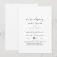 Cette invitation de réception de fuite moderne avec écriture est parfaite pour une fête post-fuite minimaliste. Le design simple en noir et blanc présente une typographie de lettrage industriel unique avec un style boho moderne. Personnalisable dans n'importe quelle couleur. Gardez le design minimal et élégant, tel quel, ou personnalisez-le en ajoutant vos propres graphiques et illustrations. Les cartes de RSVP sont vendues séparément, ou vous pouvez ajouter les informations de RSVP au verso de la carte.