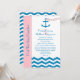Cette invitation de réception de mariage après la cérémonie nautique est présentée en rose et bleu. Le design présente une ancre jetée dans une mer en chevron ou en zigzag. Vous pouvez personnaliser le design avec le nom des mariés, vos informations de mariage et les détails de votre réception de mariage pour créer une invitation à thème nautique exceptionnelle. Copyright henishouseofpaper