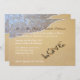 Invitation de réception de mariage sur le thème de la plage élégante parfaite pour le couple qui s'enfuit ou se marie dans une destination de rêve. L'arrière-plan de l'invitation est réalisé à l'aide d'une photographie d'une plage de sable, avec le mot amour écrit dans le sable. Personnalisez le texte pour répondre à vos besoins.