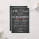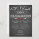 Cette invitation de réception de mariage après-cérémonie LOOK sur tableau noir à la craie grise et blanche dans le style vintage comporte une variété de polices avec des volutes et des cœurs rouges romantiques. C'est une nouvelle interprétation amusante de la tendance "Manger, boire et être marié", avec un jeu de mots qui dit "A mangé, a bu et s'est marié" pour refléter l'événement de mariage antérieur. Elle est présentée ici sur du papier de base. Elle est facilement personnalisable avec vos propres informations. Il y a du texte personnalisable que vous pouvez modifier comme vous le souhaitez. NOTEZ également que tout sera imprimé tel qu'il apparaît sur votre écran. Zazzle ne modifiera rien pour les fautes de frappe ou les problèmes d'alignement, etc., et je ne le verrai pas une fois que vous l'aurez commandé. Si vous avez besoin d'aide pour la formulation, veuillez m'envoyer un e