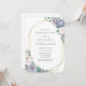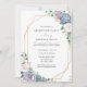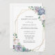 Invitation de réception de mariage bohème rustique avec succulentes violettes, vertes et bleues poussiéreuses et un cadre doré. Personnalisez avec vos informations pour le jour de la réception. Cliquez sur "cliquez pour personnaliser davantage" pour changer le style, la taille ou la couleur de la police.