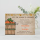 Cette invitation sur le thème de l'automne est parfaite pour une réception informelle après le mariage. Le design comprend un panier de citrouilles, une rangée de tournesols et un fond en détresse.