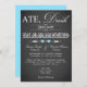 Cette invitation de réception de mariage post LOOK sur tableau noir à la craie grise et blanche dans le style vintage comporte une variété de polices avec des volutes et des cœurs bleus romantiques. C'est une nouvelle interprétation amusante de la tendance "Manger, boire et être marié", avec un jeu de mots qui dit "A mangé, a bu et s'est marié" pour refléter l'événement de mariage à destination antérieur. Il est présenté ici sur du papier de base. Il est facilement personnalisable avec vos propres informations. Il y a du texte personnalisable que vous pouvez modifier comme vous le souhaitez. NOTEZ également que tout sera imprimé tel qu'il apparaît sur votre écran. Zazzle ne modifiera rien pour les fautes de frappe ou les problèmes d'alignement, etc., et je ne le verrai pas une fois que vous l'aurez commandé. Si vous avez besoin d'aide pour la formulation, veuillez m'envoyer un e-mail AVANT de commander