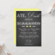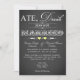 Cette invitation de réception de mariage après la cérémonie LOOK sur tableau noir à la craie grise et blanche dans le style vintage comporte une variété de polices avec des rouleaux et des cœurs jaune pâle. C'est une nouvelle interprétation amusante de la tendance "Manger, boire et être marié", avec un jeu de mots qui dit "A mangé, a bu et s'est marié" pour refléter l'événement de mariage antérieur. Il est présenté ici sur du papier basique. Il est facilement personnalisable avec vos propres informations. Il y a du texte personnalisable que vous pouvez modifier comme vous le souhaitez. AUSSI, veuillez noter que tout sera imprimé tel qu'il apparaît sur votre moniteur. Zazzle ne modifiera rien pour les fautes de frappe ou les problèmes d'alignement, etc., et je ne le verrai pas une fois que vous l'aurez commandé. Si vous avez besoin d'aide pour la formulation, veuillez m'