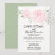 De douces roses aquarelles roses créent une ambiance romantique sur cette annonce de mariage en fuite et invitation de réception. Deux grandes roses sont entourées de verdure et de feuilles de menthe douce. Les noms des mariés sont écrits dans une police de caractères cursive large et fluide. Le reste du texte est dans une police sérif sophistiquée. Tout le texte est très facile à personnaliser. Le dos de l'invitation est un vert sauge doux avec juste un soupçon de motif de feuille.