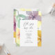Éclairez votre fête avec cette joyeuse invitation de mariage fleur sauvage d'aquarelle. Avec des fleurs peintes à la main en jaune pastel, lavande et corail sur un arrière - plan en ivoire doux, ce design apporte un charme fantaisiste et d'inspiration jardin à votre rassemblement spécial. Idéal pour les fêtes d'après-elopement ou les réceptions décontractées.