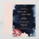 Cette invitation de réception de mariage floral nuit étoilée inspire soit un thème d'été à minuit, soit un thème d'hiver sombre et enneigé, ce qui en fait un design polyvalent selon les saisons. Le bleu marine, presque noir, aquarelle avec un ciel rempli d'étoiles célestes ou de flocons de neige, combiné à l'éclat de fleurs roses minimales et de calligraphie, est sûr de parler de la magie de votre célébration de mariage, quelle que soit la période de l'année.