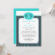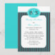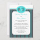 Cette invitation de réception de mariage est un design très moderne car elle présente le monogramme mis à jour (un monogramme pour lui et pour elle) en haut. De plus, les couleurs modernes bleu oeuf de robin et gris acier sont associées dans une belle rayure. Une invitation de réception de mariage époustouflante. Copyright henishouseofpaper