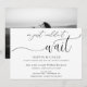 L'annonce de mariage "Juste Mariés" fait également office d'invitation de réception de mariage. L'invitation de réception recto-verso présente le texte "Nous n'avons pas pu attendre" avec un texte annonçant le mariage des jeunes mariés et invitant les invités à une réception de mariage décontractée. Personnalisez avec votre photo horizontale au verso ou laissez vide si aucune photo n'est souhaitée.