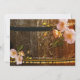 Une invitation de réception de mariage post-mariage ou après-mariage sur le thème du vin avec un design romantique avec des raisins, des roses couleur pêche et des guirlandes lumineuses festives sur un fond de tonneau de vin en bois doré. Beau pour une célébration de vignoble ou de vigneron. Cette invitation fait partie d'une collection de mariage.