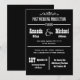 Cette invitation de réception de mariage est une invitation de style théâtre en noir et blanc ! Une décoration apparaît en haut avec les mots "Post Wedding Production" juste en dessous et ensuite "Starring" avec les prénoms dans un style de caractères plus grands que les noms de famille. Vous pouvez personnaliser la conception de la typographie avec le lieu et la date de votre mariage. En bas, vous invitez vos invités à se joindre à vous pour une célébration avec la date, l'heure et le lieu indiqués sur l'invitation. Ce sont vraiment des invitations amusantes avec une touche créative unique pour annoncer votre réception de mariage. Copyright henishouseofpaper
