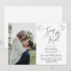 Annoncez à vos amis et à votre famille que vous vous marierez lors d'une cérémonie privée, puis invitez-les à une célébration de réception de mariage après la cérémonie / réception.. Personnalisez avec vos informations et votre photo. Avec la mention "Tying the knot" dans un script délicat avec des branches florales dessinées à la main.