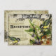 Carte d'emplacement d'informations de réception assortie. PALETTE DE COULEURS : jaune, beige, crème, orange, vert et noir. CONCEPTION : Cet ensemble de faire-part de mariage ou collection, inspiré de la typographie ancienne vintage, comprend un ensemble complet de produits et a été créé en plusieurs coloris. Utilisant des volutes décoratives d'ornements d'imprimeur vintage de l'ère victorienne baroque, mélangées à l'art floral de carte postale comprenant le muguet, les violettes anglaises, les roses et les fleurs de gueule-de-loup. Un couple d'oiseaux chanteurs jaunes avec une cage à oiseaux ouverte complète le devant de l'invitation. Le verso comprend votre texte, qui est facilement personnalisable à l'aide des champs de modèle pour la personnalisation. Il y a plus de dessins de fioritures en volutes, des travaux de ligne en volutes, des bords vieillis et grunge et la cage à oiseaux et les roses