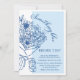 Élégante et charmante, cette douce invitation de remise de cadeaux de mariée bleue présente une délicate œuvre d'art dessinée à la main. Parfaite pour célébrer la future mariée, elle donne un ton gracieux à un rassemblement « Quelque chose de bleu avant que je ne le fasse ».