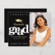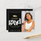 Annoncez au monde que votre diplômé préféré a atteint son objectif avec cette invitation de annonce de budget personnalisée, simple, moderne et époustouflante. Une typographie blanche, graphique et en gras, ainsi qu'une icône de casquette en faux or sur un fond noir moderne. Sur le côté droit, ajoutez une photo de votre choix. Personnalisez le texte personnalisé avec le nom de votre diplômé, le nom de l'école, la date et l'année de la promotion. Au verso, ajoutez votre note personnelle, l'école suivante qu'ils fréquenteront, les informations sur la fête, etc. Garantie d'ajouter une touche de style amusant à leur occasion spéciale !