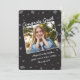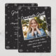 Célébrez votre diplômé avec cette invitation et annonce de remise de diplômes photo avec des gribouillis de confettis de casquette de graduation dessinés à la main en noir. L'arrière-plan présente des casquettes de diplômés éparpillées rappelant des confettis, associées à un cadre dessiné à la main et à un gland pour un look ludique et pourtant élégant. Les détails illustrés ajoutent de la personnalité tout en gardant le style général moderne et intemporel.