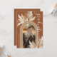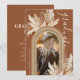 Cartes d'invitation de fête de remise de diplômes rustique bohème avec un fond de terre cuite avec un arc-en-ciel, une photo du diplômé, des feuilles de palmier séchées de désert aquarellées, de l'herbe de pampas et un modèle de texte élégant facile à personnaliser.