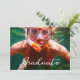 Envoyez des invitations de remise de diplôme personnalisables, modernes et cool. Remplacez la photo exemple par la vôtre. Le texte en écriture blanche tendance qui se superpose à la photographie sur le devant indique "Diplômé". Le verso noir de l'invitation comporte le mot "célébrer" dans une police d'écriture blanche. Remplacez le texte exemple blanc au verso pour votre diplômé et votre événement. Personnalisez-le pour n'importe quel diplômé : lycée, université, école supérieure, faculté de droit, faculté de médecine ou école professionnelle.