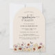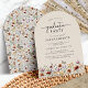 Faire-part de remise de diplôme avec arche de fleurs sauvages. Élevez votre célébration de remise de diplôme avec notre faire-part de remise de diplôme avec arche de fleurs sauvages, doté d'un design audacieux en forme d'arche qui incarne l'esthétique Rustique Boho Wildflowers. Cette invitation présente un mélange harmonieux d'herbes séchées, de feuilles douces et de fleurs vintage dans des tons chauds et terreux de tan, marron, rouille, terracotta, violet, bleu, rose et orange brûlé. Le dos à motif ajoute une couche supplémentaire de charme, ce qui rend cette invitation aussi unique que votre célébration. Entièrement personnalisable, vous pouvez ajuster la formulation, les styles de police et l'arrière-plan pour refléter votre style personnel. Parfait pour les remises de diplôme de lycée et d'université, ce design avant-gardiste