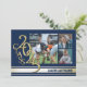 Annonce de graduation à triple photo à rayures varsity or pour la promotion 2025 en bleu et or.