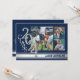 Annonce de remise des diplômes à triple photo à rayures de l'université argentée de la promotion 2024 en bleu et argent.