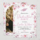 Célébrez son succès avec cette invitation de remise des diplômes "Pink Cosmos & Bee". Avec des fleurs sauvages aquarelles roses délicates et des illustrations de abeilles charmantes pour un effet naturel. Ce design botanique fantaisiste avec une toque de graduation rose est parfait pour une fête de jardin de printemps pour la promotion 2026. Idéal pour les diplômés qui aiment les abeilles, la nature et la papeterie florale élégante.