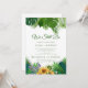Cette carte d'invitation de renouvellement de vœux de couronne de soleil d'été est parfaite pour une cérémonie et une célébration de renouvellement de vœux de printemps ou d'été. Le design présente une couronne de verdure florale avec des tournesols jaunes brillants et des fleurs de gerbera roses.