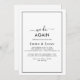 Célébrez votre amour éternel avec cette invitation de renouvellement de vœux minimaliste "We Do Again". Le design moderne et romantique présente une typographie classique en noir et blanc, complétée par une calligraphie rustique et élégante dans un style à l'ancienne écrit à la main. Personnalisable dans n'importe quelle couleur, vous pouvez garder le design simple et sophistiqué ou le personnaliser avec vos propres graphiques et illustrations. Parfait pour une célébration de renouvellement de vœux sincère et élégante.