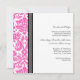 Élégante invitation à renouveler vow mariage dans chic et élégant rose chaud fuchsia, noir et blanc classique vintage damask motif floral avec texte entièrement personnalisable pour inclure vos détails de la cérémonie de renouvellement vow. Contactez-nous pour une couleur personnalisée.