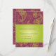 Des motifs paisley verts surimpriment un fond violet riche. Le texte de mariage personnalisé est placé sur un panneau dégradé vert citron. Idéal pour un mariage sur le thème de l'Asie du Sud-Est ou lorsque vous voulez faire une déclaration chaleureuse et audacieuse. Disponible en couleurs alternatives avec des produits assortis.