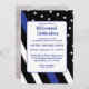 Invitation de retraite de police avec drapeau de ligne bleue pour célébrer la retraite de votre collègue. Ajoutez sa photo au verso en utilisant le modèle facile.