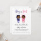 Célébrez votre joie à venir avec cette invitation révélée par le genre branché qui présente deux bébés afro-américains cool — le garçon portant un sweat - shirt à capuche bleu et la fille en robe à capuchon rose. Un texte entièrement personnalisable vous permet de personnaliser chaque détail pour un invitation d'événement unique et mémorable. Parfait pour le genre dévoilent les célébrations !