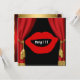 Invitation de fête d'anniversaire avec grands lèvres, batterie, saxophone, trompette, noir, rouge, or et rideaux