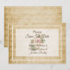 Carte de sauvegarde de date de mariage de rose antique décolorée et de partition musicale vintage.