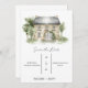 C'est une simple invitation de sauvegarde de date sur un fond blanc simple avec une peinture de manoir en haut. Il contient le lieu, le nom du couple et la date.