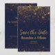 Carte moderne de sauvegarde de date, écriture, marine et or parfaite pour votre mariage sous les étoiles. Assurez-vous que tout le monde sauvegarde la date et reste informé avec votre code QR personnalisé pour partager les événements importants et les photos. Fait partie de la collection de mariage sous les étoiles conçue par LeAnn's Craft Room.