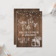 Cette conception présente un fond en bois rustique avec des guirlandes lumineuses suspendues et des pots Mason vintage et des fleurs. Personnalisez ceci pour n'importe quelle occasion, mais idéal pour une invitation de sauvegarde pour un mariage champêtre à venir !
