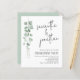 Il y a deux options de papier à choisir pour cette taille (4,5 x 5,6 po) dans la plage Budget. Pour ce produit, je recommanderais le semi-brillant qui est un stock de carte de 110 gsm, semblable en épaisseur à une carte postale. L'option Satin est un papier beaucoup plus fin 80gsm. La valeur par défaut est semi-brillante. VEUILLEZ NOTER qu'il y a UN par feuille. Invitation du Fiançailles de script Eucalyptus Budget. Un style botanique minimaliste avec une élégante branche de feuilles d'eucalyptus aquarelle courant sur le côté gauche et une typographie moderne stylisée.
