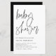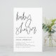 Invités Invitations à votre événement avec cette invitation minimaliste au baby shower. Il dispose d'un script minimaliste noir écrit à la main avec une simple typographie. Personnalisez en ajoutant les noms, la date, l'heure, le lieu et d'autres détails. Cette invitation de baby shower moderne est disponible sur d'autres cartes.
