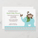 Adorable invitation singe et éléphant bleu pour votre prochain baby shower ou fête d'anniversaire. Des articles correspondants sont disponibles !