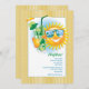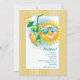 Une invitation parfaite d'été pour une partie de mojito ou toute célébration au soleil. Le panneau arrière a les rayures jaunes minces et le soleil de sourire porte des lunettes de soleil et des pains grillés avec un cocktail de mojito. Il est facile customiser la carte avec vos mots, police, couleur de police et choix de six types de papier.
