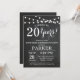 Fond de tableau noir d'invitation de surprise d'anniversaire 20 ans avec des guirlandes lumineuses. Noir et blanc. 13e 15e 16e 18e 20e 21e 30e 40e 50e 60e 70e 80e 90e 100e, Tout âge. Anniversaire adulte. Fête d'anniversaire pour homme ou femme. Pour une personnalisation supplémentaire, veuillez cliquer sur le bouton "Personnaliser" et utiliser notre outil de conception pour modifier ce modèle.