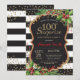 Invitation de surprise pour les 100 ans pour femmes ou hommes. Invitation à une fête d'anniversaire de Noël. Fleur florale de Noël. Paillettes noires, rouges et or. Rayures noires et blanches. Numérique imprimable. Pour une personnalisation plus poussée, veuillez cliquer sur le bouton "Personnaliser" et utiliser notre outil de conception pour modifier ce modèle.