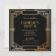 Invitation de Sweet 16 des années 1920 en noir et or dans le style Art Déco. Découvrez nos cartes de réponse et de réception assorties.