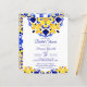 Invitation de douche de mariée mexicaine vintage pas chère avec des carreaux jaunes et bleus Talavera azulejo, invitations de douche de mariée imprimées abordables, motif de carreaux bleus méditerranéens italiens, cartes d'invitation avec motif de carreaux grecs Maiolica bleus