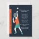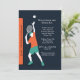 Une invitation de sport-thème pour l'anniversaire d'un enthousiaste de tennis. La carte comporte un joueur de tennis masculin environ pour servir la boule. L'orange audacieuse, la sarcelle d'hiver et les couleurs blanches sautent sur le fond noir.