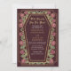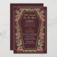 Faites une déclaration audacieuse d'amour éternel. Cette invitation tout-en-un mariage gothique présente "Till Death Do Us Part" dans un cadre en forme de cercueil, orné d'épines, de roses et d'accents d'or contre un arrière - plan rouge avec votre propre code QR à l'arrière de l'invitation. Parfait pour une fête romantique ! Personnalisez le texte, la police et la couleur arrière - plan en fonction de vos préférences de conception. Objets correspondants dans notre boutique pour un thème de fête complet. Veuillez noter que l'or sur l'invitation n'est PAS un vrai papier d'aluminium et est imprimé en couleurs plates.