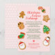 Cette invitation moderne et festive est parfaite pour célébrer une fête d'échange de cookies de Noël. Il présente un poème mignon comme libellé, et une bordure d'illustrations de cookies de Noël.