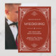 Ces invitations de mariage séduisantes présentent une touche moderne d'art déco classique. Un cadre géométrique et orné, festif et très clair argent/blanc décorent un élégant arrière - plan rouge festif pour un look mariage des années 1920 dramatique, glamour et vintage, parfait pour votre mariage de Noël. Ta photo va à l'arrière.